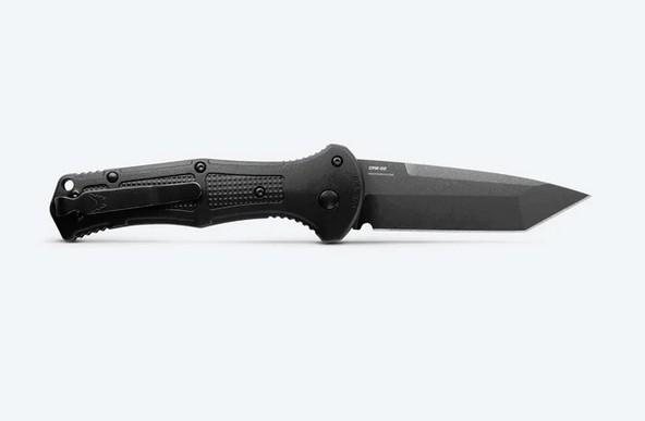 The Benchmade 9071BK Claymore is a high-performance automatic out-the-front (OTF) knife engineered for tactical use, EDC, and professional applications. Its 3.60" CPM-D2 tool steel blade with a black Cerakote® finish delivers exceptional edge retention, corrosion resistance, and precision cutting. The tanto blade profile provides superior piercing strength and versatility for demanding tasks.