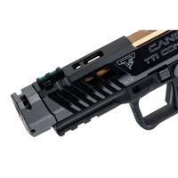 Crafted in collaboration with Taran Tactical Innovations, the Canik TTI Combat brings competition-level ergonomics, advanced features, and unmatched build quality—all wrapped in a striking Smoke Cerakote finish. Designed for elite performance and quick customization, this pistol stands ready for any mission.