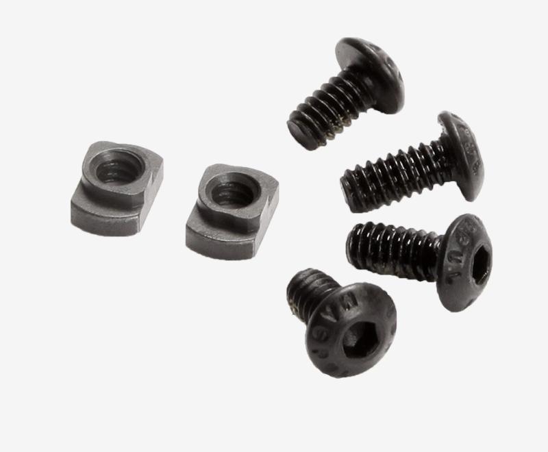 The M-LOK T-Nut Replacement Set is a replacement hardware pack designed for use with all M-LOK accessories. Made of 4140 Chromoly Steel with a Mil-Spec Manganese Phosphate finish, the hardware set is supplied with two T-Nuts as well as two different length button-head cap screws to ensure compatibility with various hand guard or forend thicknesses. A self-locking reusable thread patch is added to the screws to ensure a secure fit upon installation.
