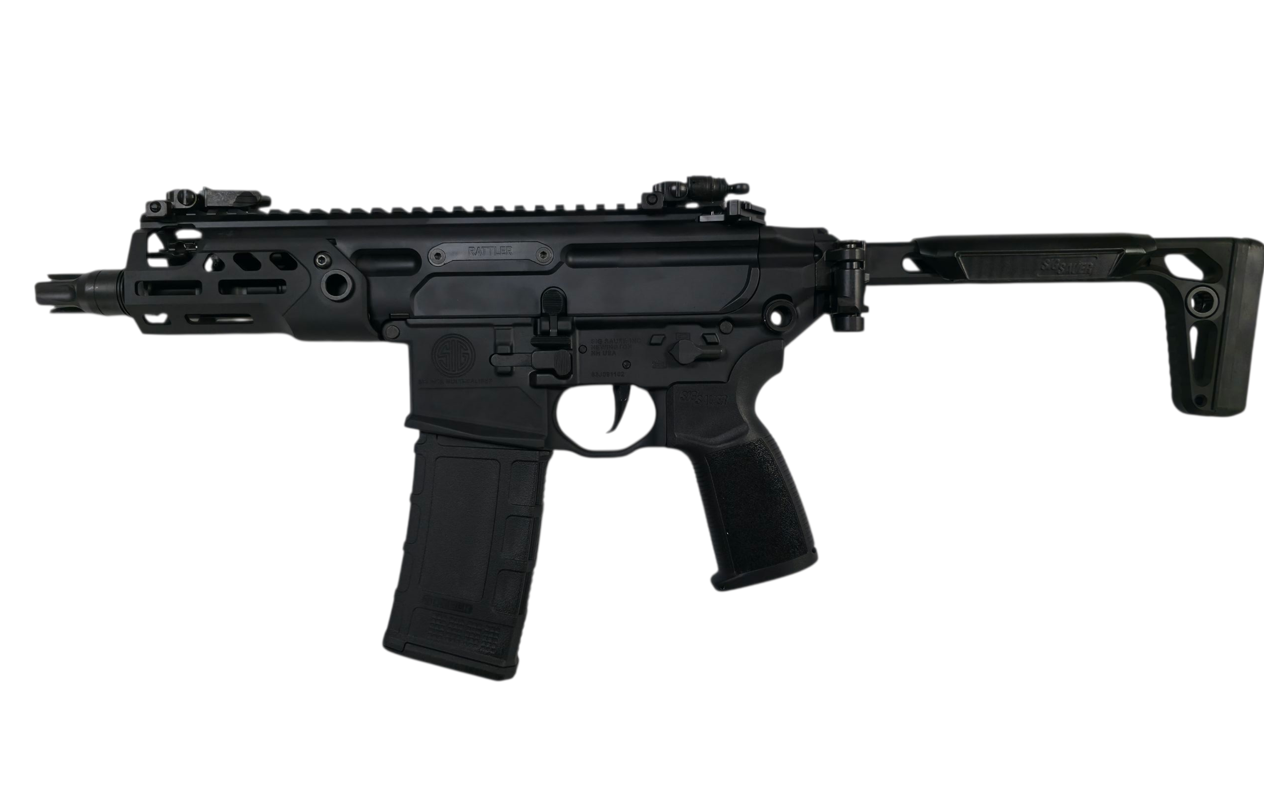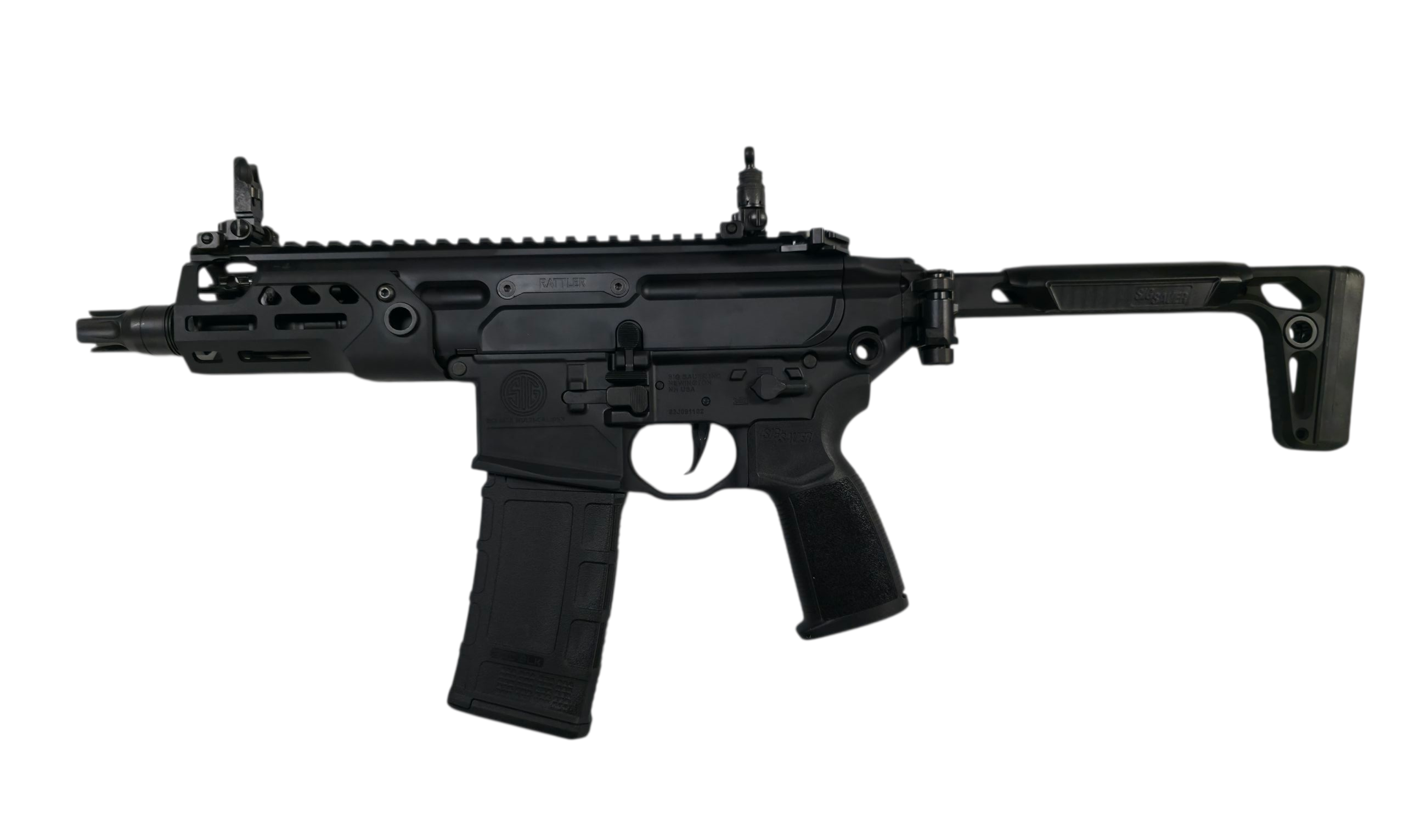 Designed around a short-stroke piston operating system and SIG’s rugged engineering, the Rattler LT delivers predictable recoil, rock-solid reliability, and fast transitions from folded to firing. The package includes a SIG SLX/SLH suppressor-ready flash hider and a SIG flat-blade match trigger for crisp, controllable breaks. Built to accept standard AR-15 magazines and fitted with a folding minimalist PDW, the MCX-Rattler LT is a highly stowable, highly capable fighting rifle.